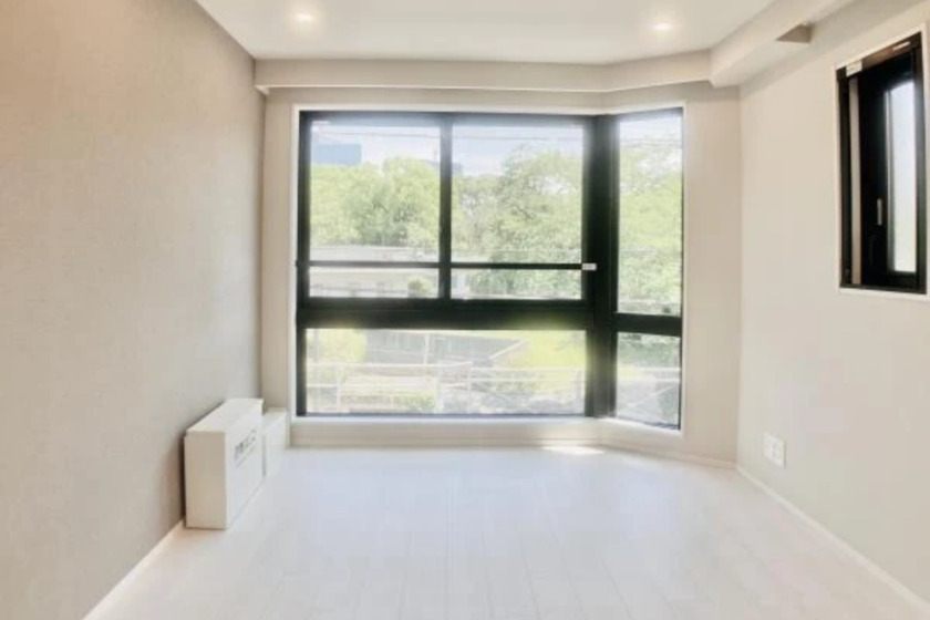 The apartment features a 1LDK layout, which includes one bedroom and a combined living, dining, and kitchen area. The floor plan is thoughtfully designed to maximize the usage of space, providing a comfortable living environment that does not feel cramped. The inclusion of large windows and dual-aspect lighting in all rooms enhances the sense of openness and brightness, making the apartment feel more spacious and inviting.
