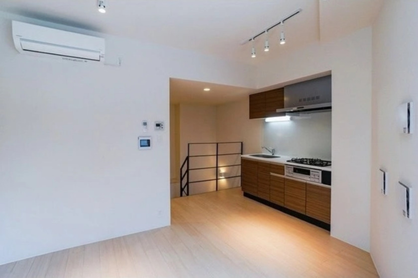 The interior boasts quality finishes, including modern flooring and a system kitchen equipped with a gas stove. Notable amenities such as air conditioning, a warm water washing toilet seat, and a bathroom dryer contribute to a comfortable living environment. Features like a TV intercom, occupancy light sensor, and a dedicated internet line enhance the convenience and functionality of this apartment.