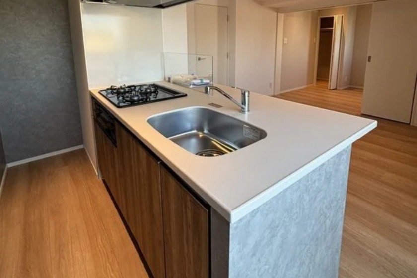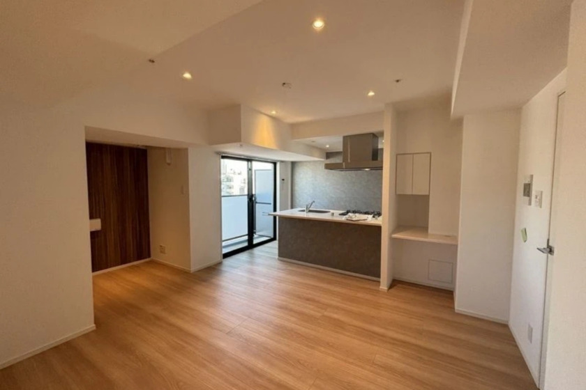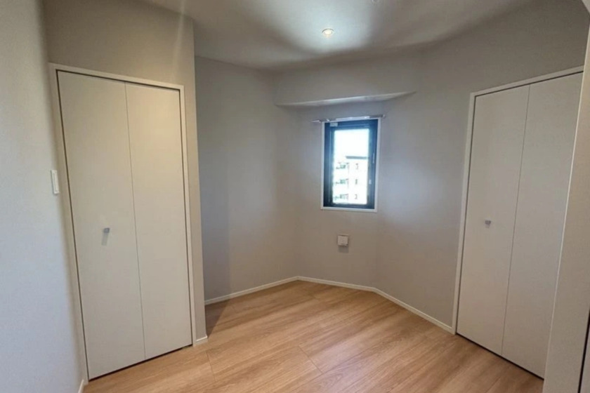 The interior embodies a crisp, modern aesthetic with wooden flooring throughout the living areas and comfortable fittings. Each room is equipped with air conditioning, and the living space opens to a balcony offering a modest city view. Noteworthy amenities like a bathroom dryer, warm water washing toilet seat, and indoor laundry facilities add to the convenience.