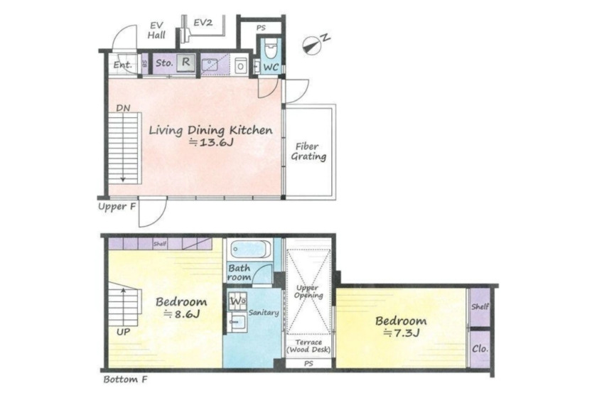 The apartment’s floor plan includes two bedrooms and a spacious living/dining/kitchen area measuring over 18.36 sqm (12 tatami mats). The layout is designed to maximize space efficiency, providing a comfortable living environment suitable for singles, couples, or small families. The inclusion of a separate washroom and a closet enhances the practicality and storage options.