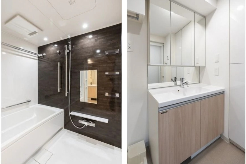 The interior of the apartment is modern and clean, equipped with high-quality finishes and fixtures. The kitchen is a highlight, featuring a system kitchen with a countertop, three or more burners, and a grill, perfect for those who enjoy cooking at home. The bedrooms are all of Western style, with wooden flooring and ample closet space, including a walk-in closet for extra storage.