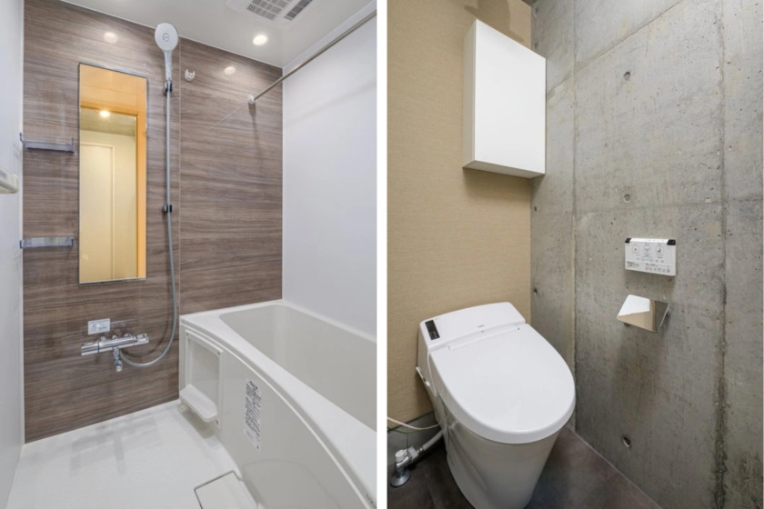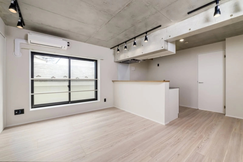 Inside, the apartment is equipped with modern amenities such as air conditioning, a TV intercom, and a bathroom equipped with a reheating function. The presence of a warm water washing toilet seat, three-way mirror vanity, and an indoor laundry area add to the overall comfort. The stylish flooring and designer finishes elevate the living experience.