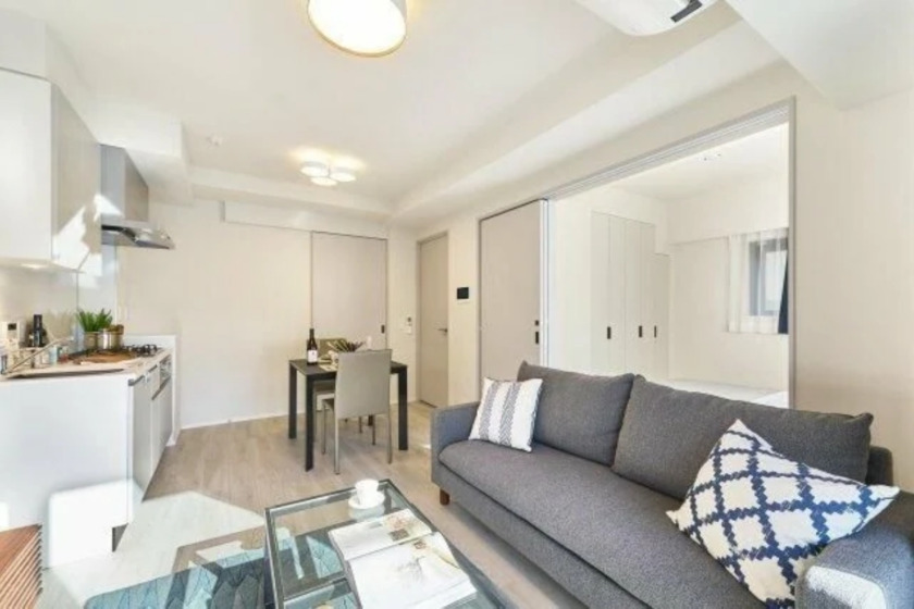 “Proud Flat Nihonbashi Odenmacho” offers an efficient 41.82 m² layout in a desirable Tokyo location, perfect for urban professionals or small families. This 2LDK (two-bedroom, living-dining-kitchen) apartment is set in a quiet residential area within walking distance of multiple train stations, including Bakurocho, Ningyocho, and Kanda.