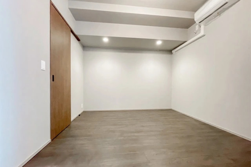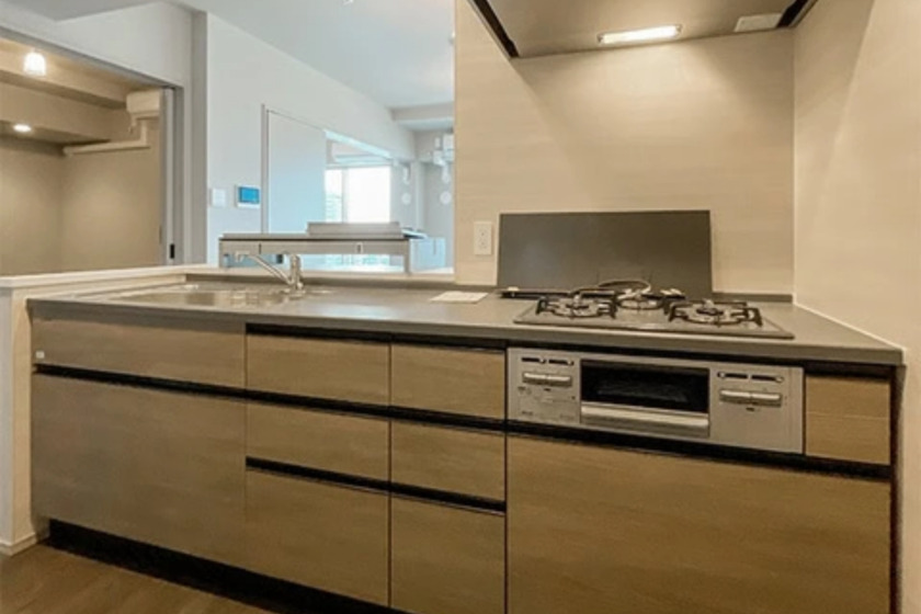 The layout of the apartment includes two bedrooms adjacent to a spacious living and dining area, which is a common arrangement in modern Tokyo apartments, maximizing the use of space. The presence of a separate kitchen equipped with modern appliances highlights a thoughtful design that appeals to those who enjoy cooking at home. The inclusion of a walk-in closet and an independent washroom adds to the functionality, catering to the needs of a contemporary lifestyle.