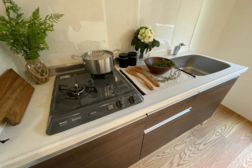 The interior boasts unused kitchen appliances, including a system kitchen with a clean, open design that encourages social cooking experiences. The bathroom and toilet are also unused, indicating a brand-new feel. Premium features such as a warm water washing toilet seat, bathroom vanity, and independent washroom add to the apartment’s appeal.