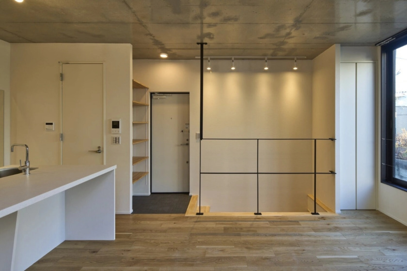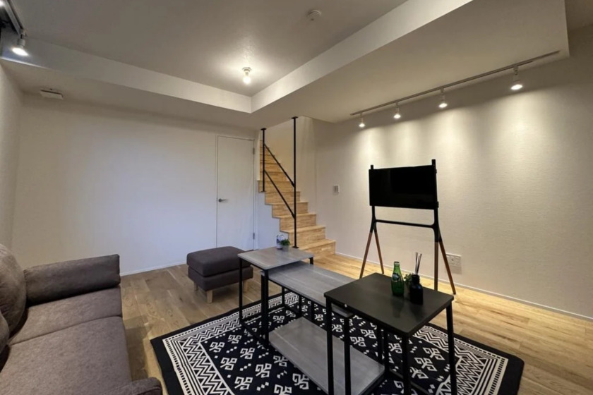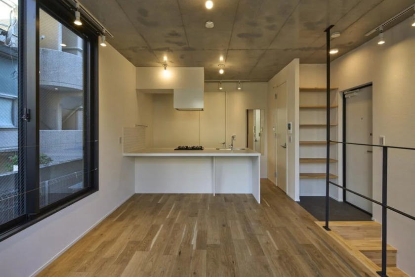 The interior of trias126 features sleek wooden flooring throughout, enhancing the contemporary feel. The living space is equipped with large windows that allow natural light to flood the room, creating a bright and inviting atmosphere. Each room is fitted with air conditioning, ensuring comfort throughout the seasons. The additional features like a bathroom dryer and a warm water washing toilet seat add a touch of luxury and convenience.